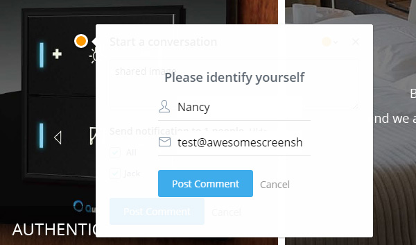 To leave a comment on an Awesome Screenshot image, first choose your desired color from the “point color” option on the top screen control bar. The “point color” bar will display the selected color. Then click anywhere on the image where you wish to place the message.